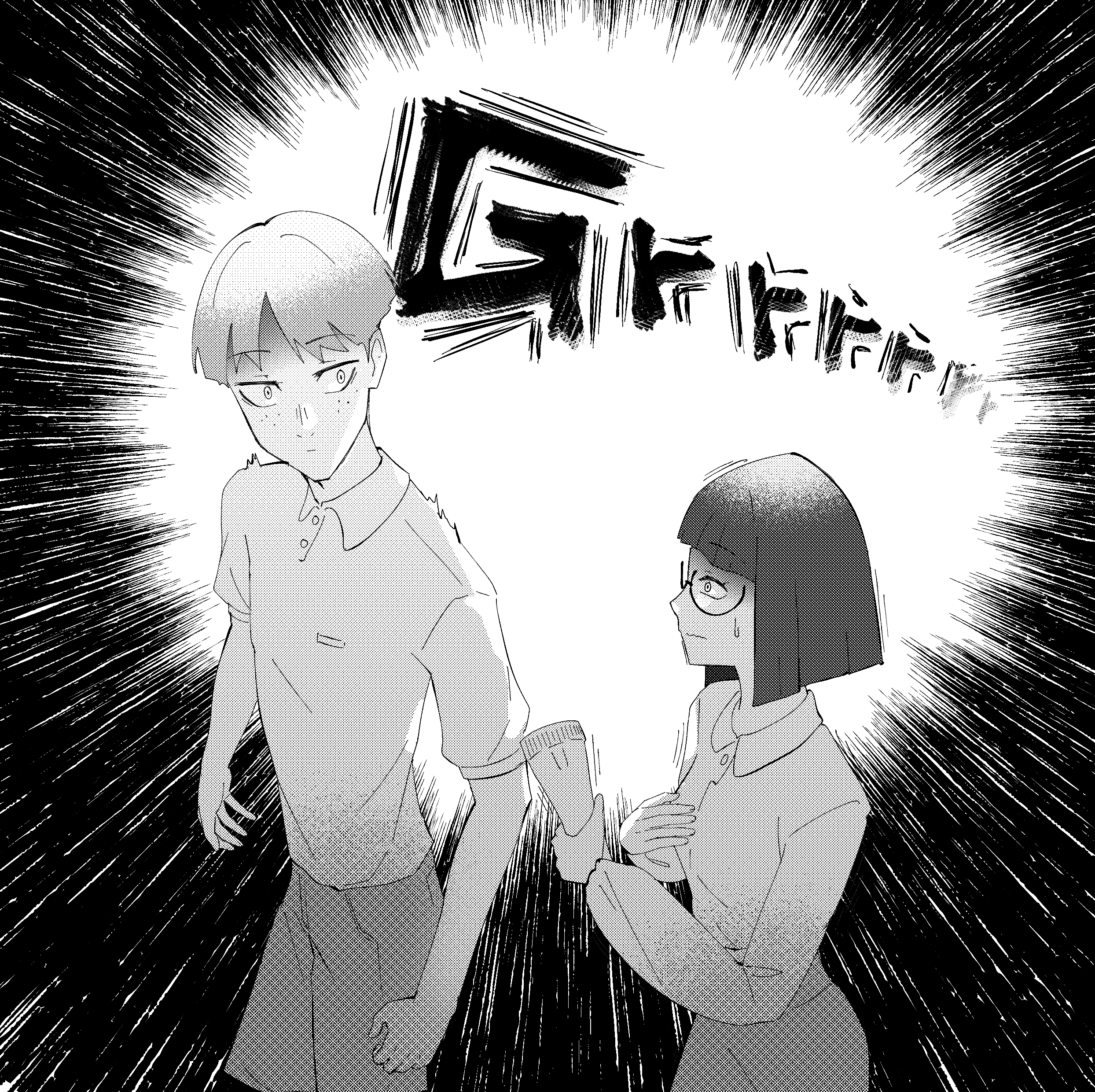 “…K-K-Kim?” he calls, his voice cracking.