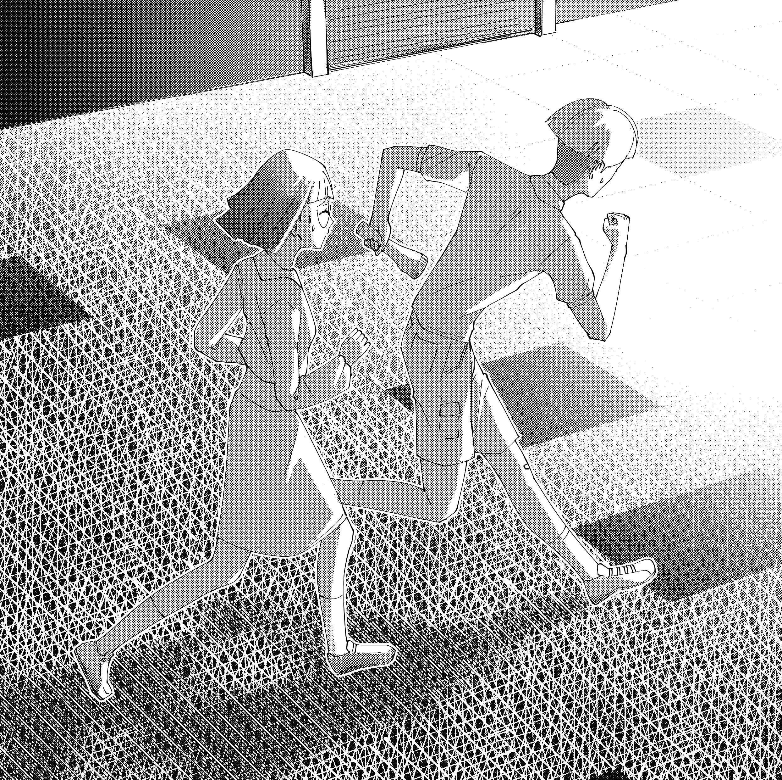 Their eyes meet filled with fear. Adrenaline surges through them like fire. They move as one. Scrambling, stumbling, they tear up the rest of the stairs, feet slamming against the steps as they race away from the dark. They sprint down the hallway, shadows whipping past them as their footsteps echo off the walls. Twists. Turns. The corridors feel endless, shifting, almost, like the building itself is trying to hold them in. A confusing maze of rotted lockers and cracked tiles grips at their legs, pulling them deeper, until they round the final corner.