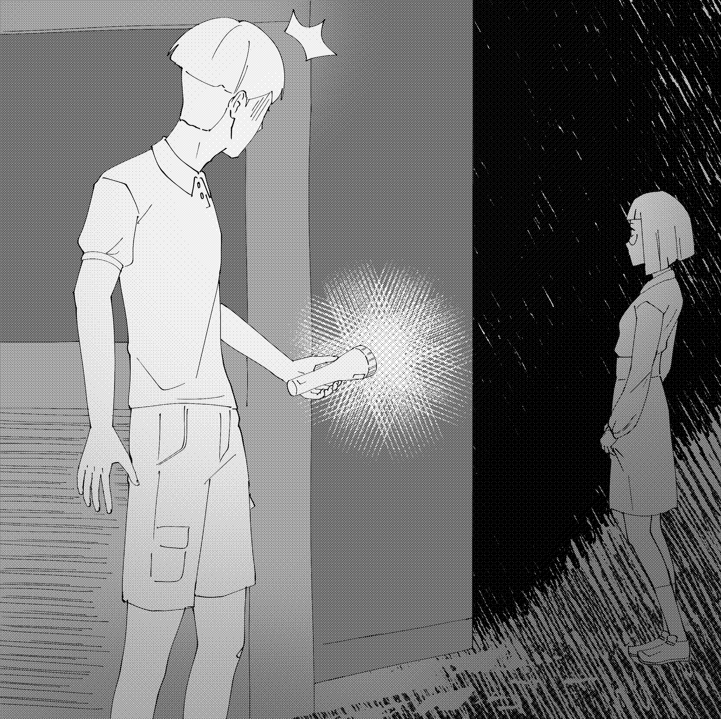 Then he reaches out and gently takes the flashlight from her, the weight of it settling into his hands.