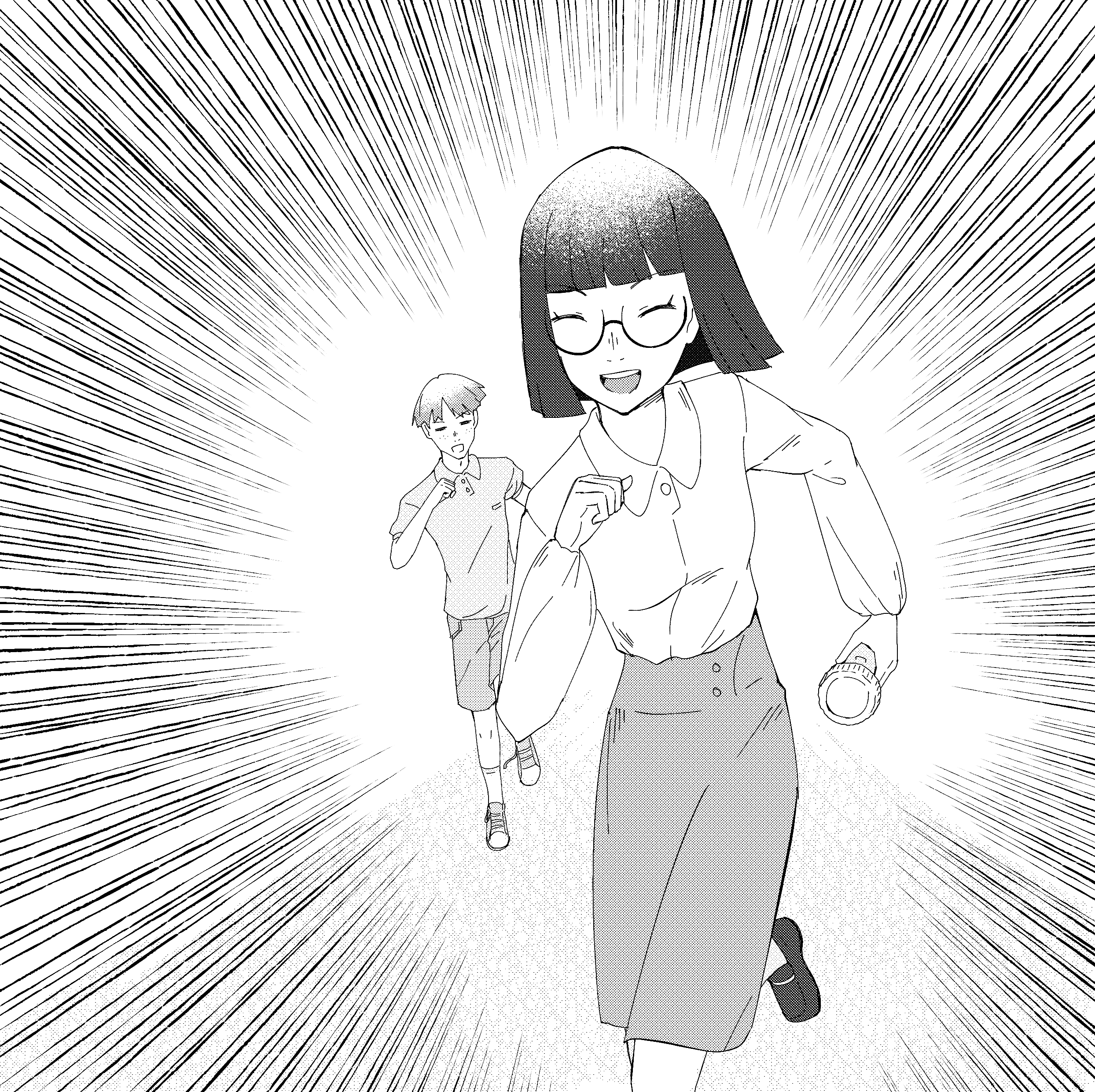 Never slowing. Never looking back. Her focus locked on the promise of fries and fizzy drinks, the thought pushing her forward as her legs move like the wind. The world narrows to the path ahead, everything else blurring past as she charges deeper into the building.