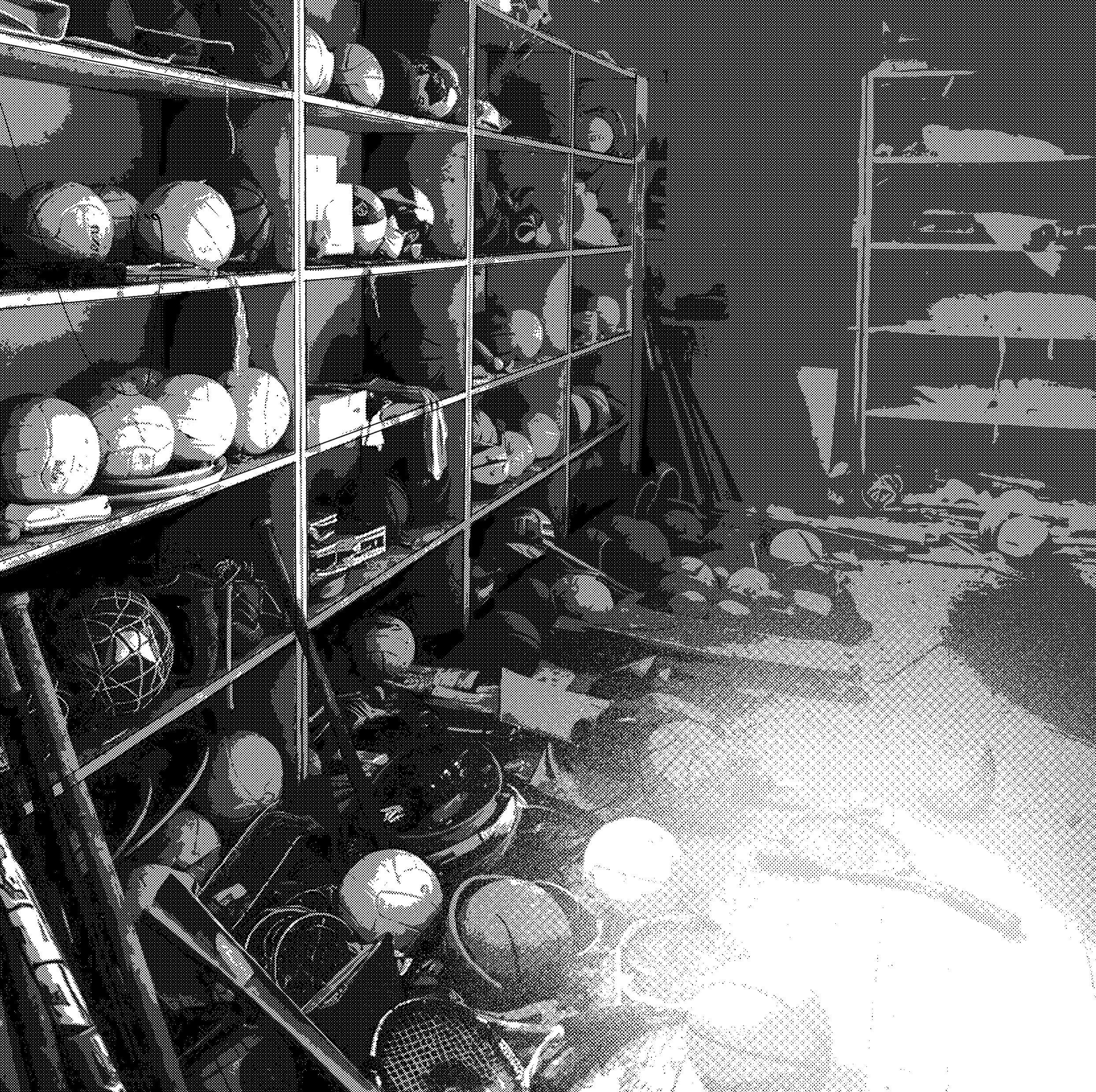 The flashlight sweeps across the room. Helmets. Nets. Dust. The darkness inside it feels deeper now. Thicker. As if something has shifted. He swallows hard and takes a cautious step forward.